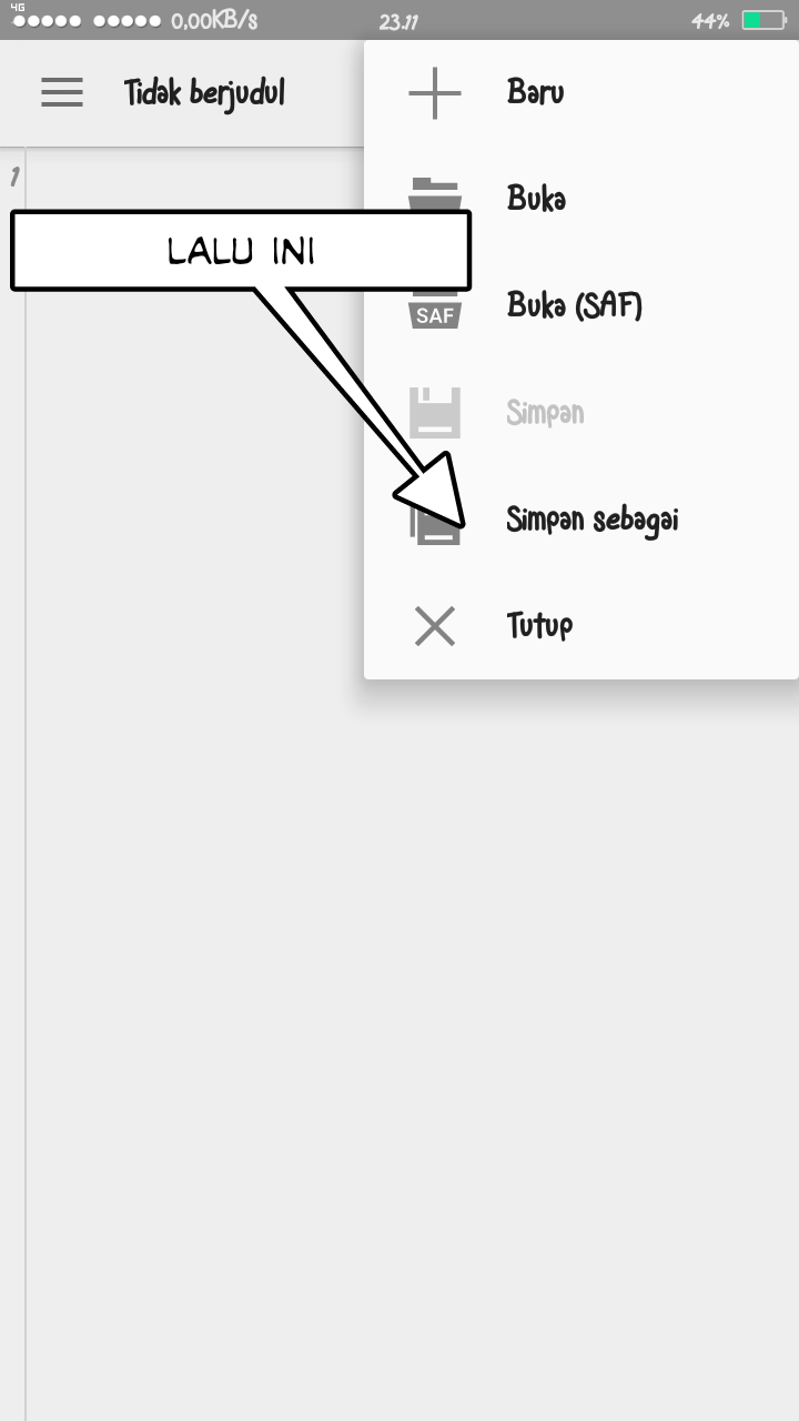 Setelah sudah selesai mengedit, sobat bisa menyimpan file tersebut dengan cara, klik logo folder lalu klik simpan sebagai lalu klik tombol tambah, seterah sobat mau ngerubah nama filenya atau tidak yang penting harus berakhiran ".xml"